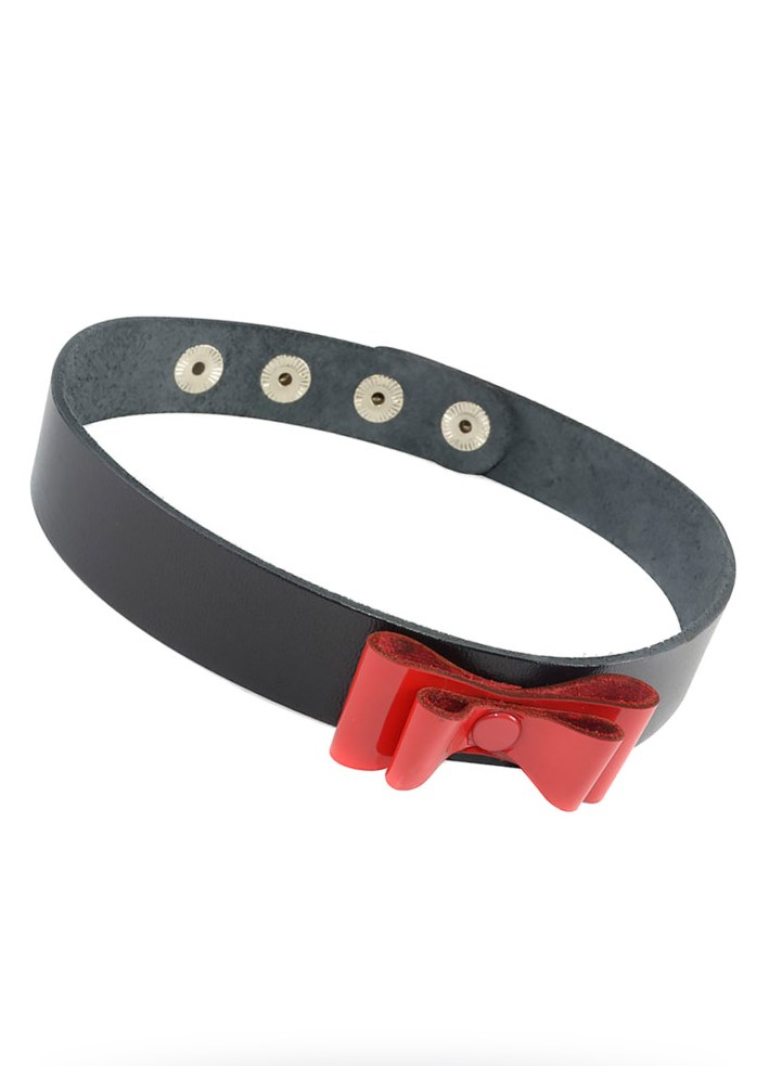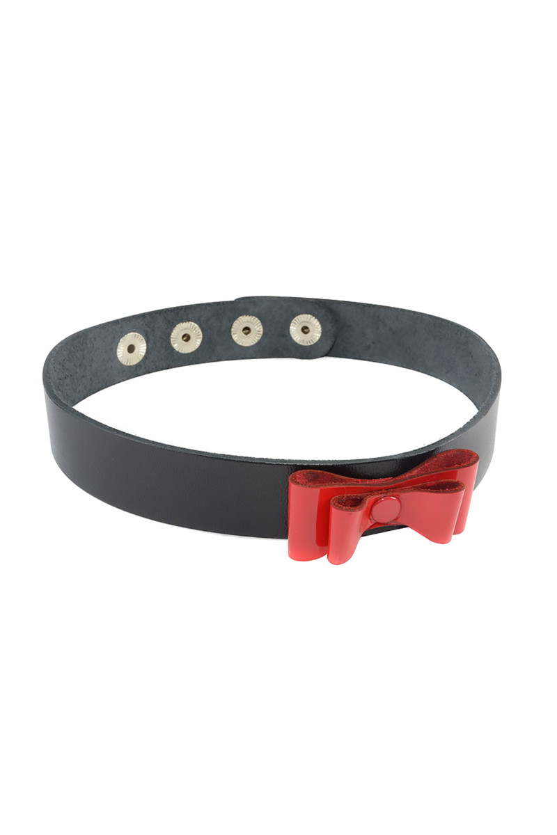 Плотно прилегая к шее, узкой черной полосой, он элегантно украсит Вашу шею, сделав её ещё более сексуальной и притягательной. Украшением данного изделия является красный объемный бантик из лаковой красной кожи.