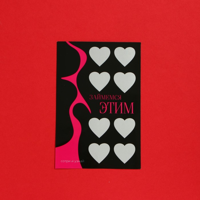 Открытка-подарок, станет сюрпризом для обоих, потому что никто не знает что там написано. На открытке есть 8 сердечек с заданьями, стирай скретч-слой и выполняй задание.