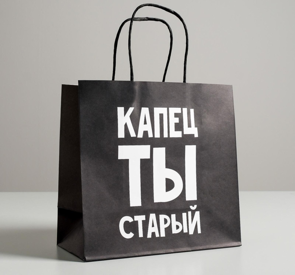 Собрался на день рождение к другу, тогда тебе точно нужен подарок с нашего сайта, а чтобы ещё добить окончательно и бурно поржать, положи подарочек в виде вагины в этот юморной пакет с надписью: Капец ты старый