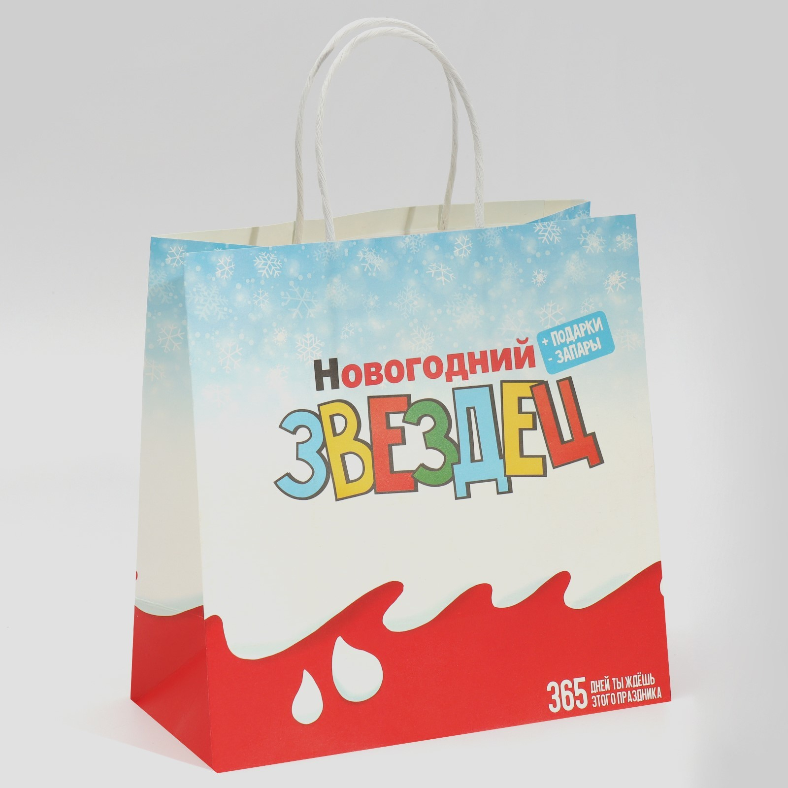 Пакет оформленный в виде киндер сюрприза, может спрятать много интересного. Ваш подарок под елкой точно заинтересует всех.