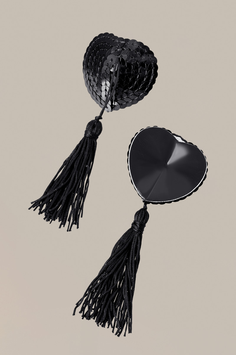 Сердечки декорированные стразиками, блестяще прикроют твои стоящие соски. Он просто не сможет отвести глаз от твоей груди. Кисточки добавят щекотки и игривости твоему образу.