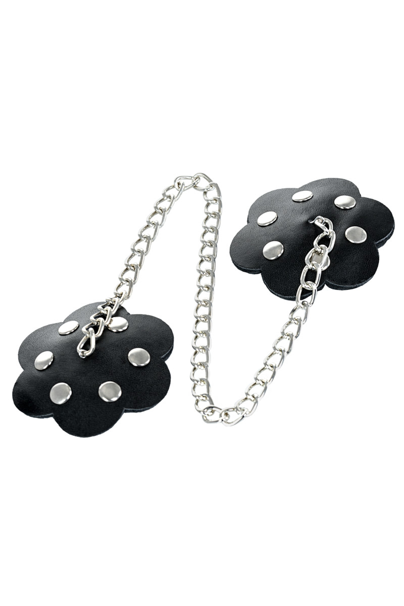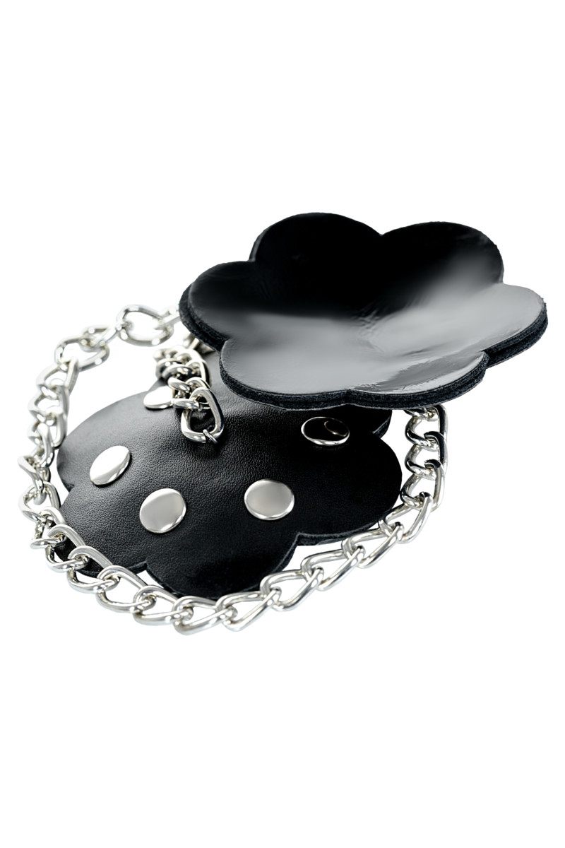 Пэстисы декорированы клепками и соединены между собой металлической цепочкой.