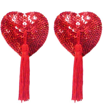 Ультра сексуальные пэстисы – сердечки выполнены в форме сердца усыпанного паетками и декорированные слегка щекотящими кисточками, на клейкой основе. Конусная форма поддерживает естественную форму груди.