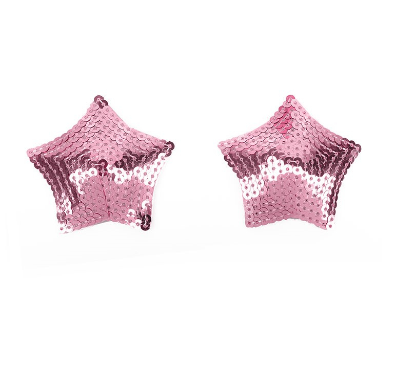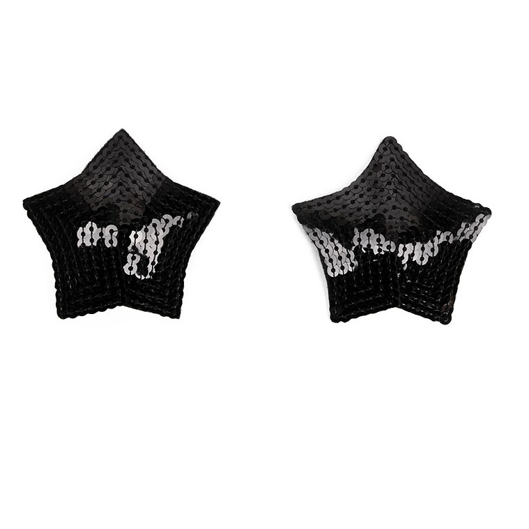 Добавить изюминку в любовную игру помогут оригинальные пэстисы в виде звёздочек. Они украсят соски, сделав грудь привлекательной и манящей. Внешняя сторона изделий отделана пайетками. На внутренней имеется специальный силиконовый слой, за счёт которого аксессуары держаться на сосках.