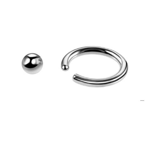 Один из самых популярных видов украшений для пирсинга — это кольцо со снимающимся шариком, также его называют сжимное кольцо или захватывающее кольцо . Такое кольцо удерживает шарик с помощью силы упругости, для чего в шарике сделаны углубления, в которые вставляются концы.