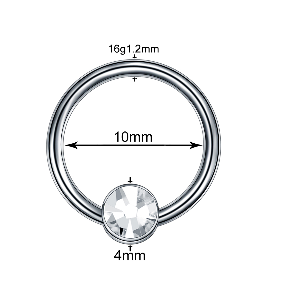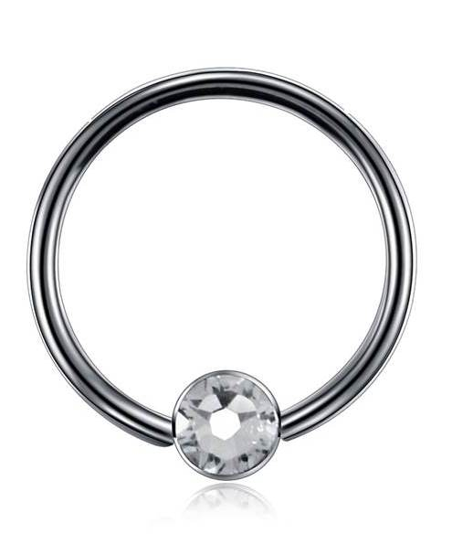 Один из самых популярных видов украшений для пирсинга — это кольцо со снимающимся шариком, также его называют сжимное кольцо или захватывающее кольцо . Такое кольцо удерживает шарик с помощью силы упругости, для чего в шарике сделаны углубления, в которые вставляются концы. Шарик украшен небольшим прозрачным стразом.