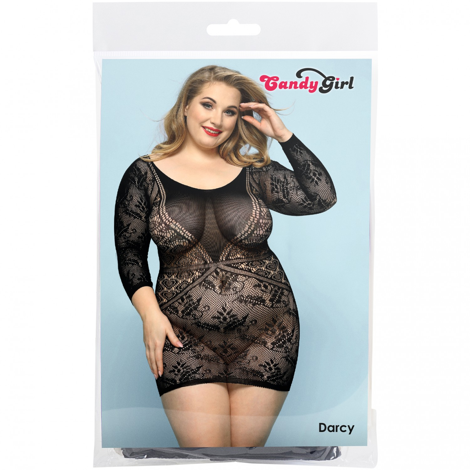 Мини-платье Darcy с рукавами выполнено из эластичной кружевной сетки. Бесшовный ажурный материал облегает фигуру как вторая кожа, подчеркивая аппетитные формы и повторяя изгибы. Геометричный рисунок расставляет правильные акценты на декольте и талии. V-образная вставка плотной сетки зрительно вытягивает силуэт и привлекает внимание к груди.