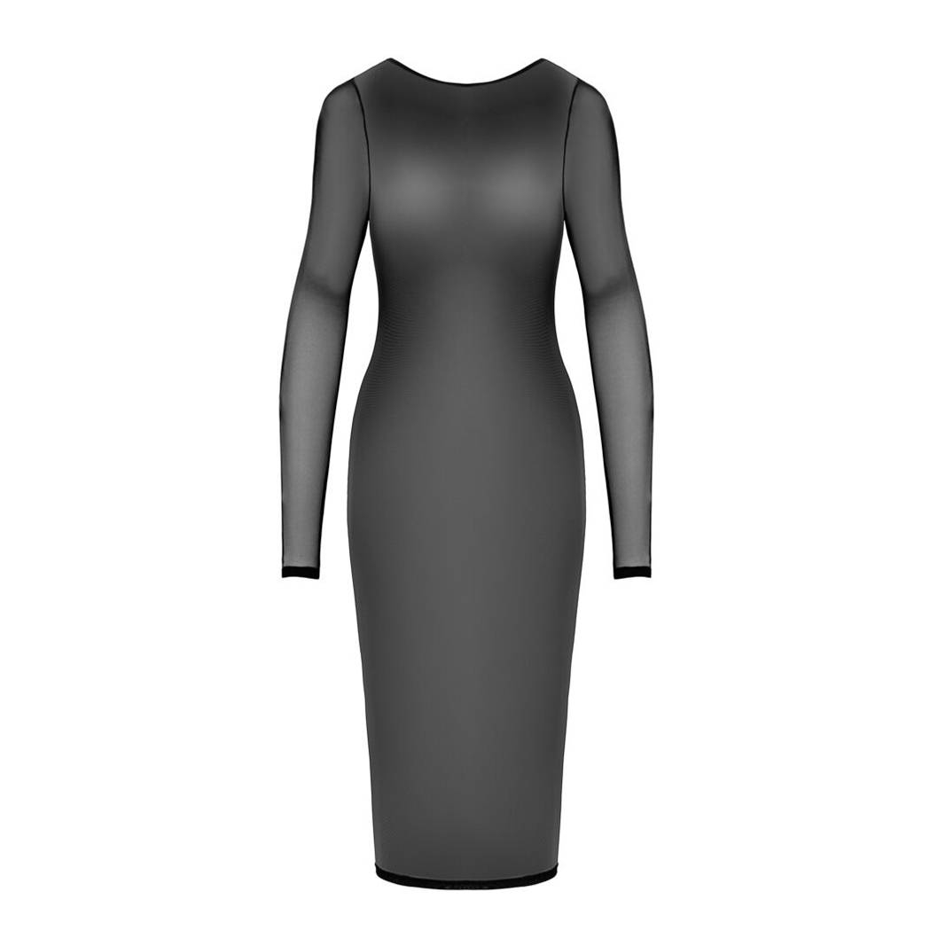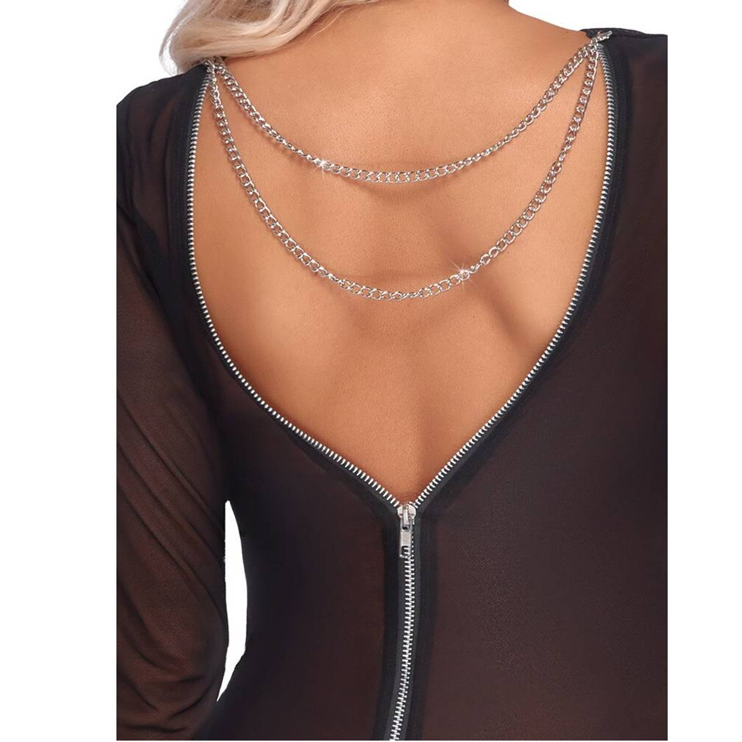Это соблазнительное платье с длинным рукавом окутает ваши потрясающие изгибы тончайшей сеткой Powerset. Эластичный материал и прорезь для ходьбы позволяют вам двигаться с легкостью и наслаждаться нежной прозрачностью кожи. Особенно привлекателен ваш вид сзади с двумя цепочками в глубоком вырезе, которые вы также можете снять, и длинной застежкой-молнией, которую можно полностью расстегнуть.