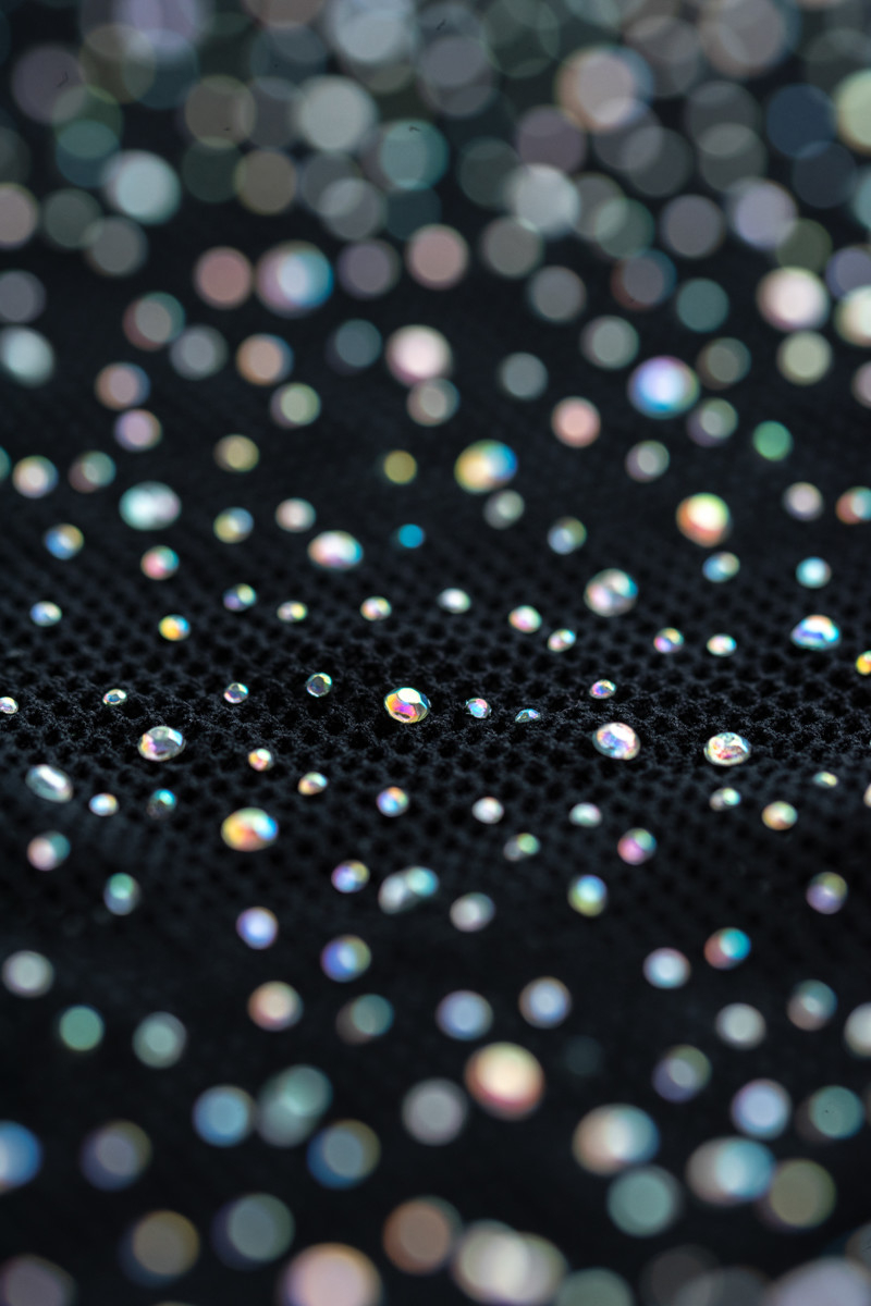 Платье Candy Girl Cleo из эластичной бесшовной сетки равномерно украшено россыпью радужных страз, мерцающих в полумраке. Классическое плетение – всегда беспроигрышный выбор.