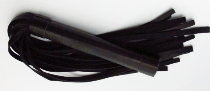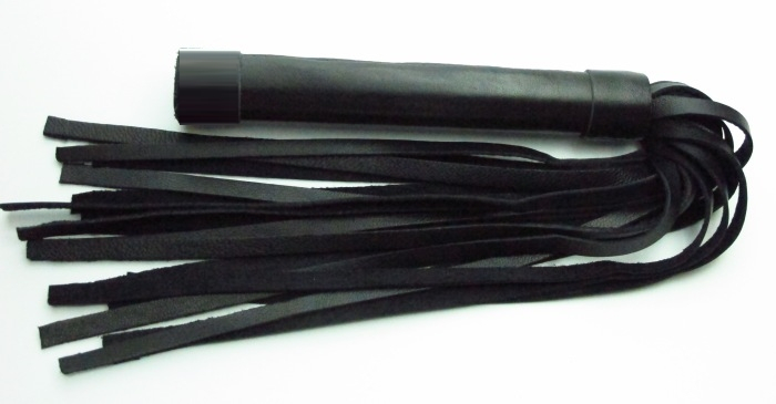 Аккуратная черная плетка, изготовленная из натуральной кожи. Имеет жесткую ручку длиной 17 см, так же покрытую кожей. Имеется петля для удобного использования плети.