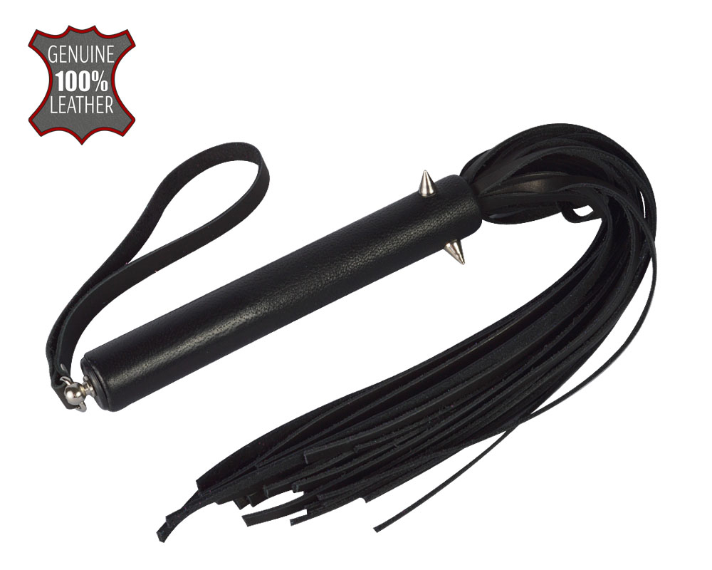 Плеть изготовлена из натуральной кожи и украшена тремя металлическими шипами.