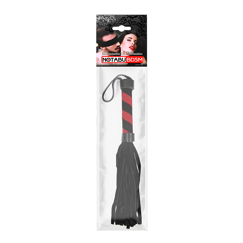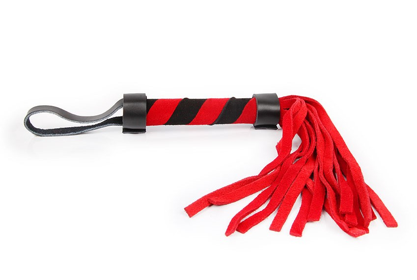 Плетка изготовлена из мягкой замши в черно-красном цвете.