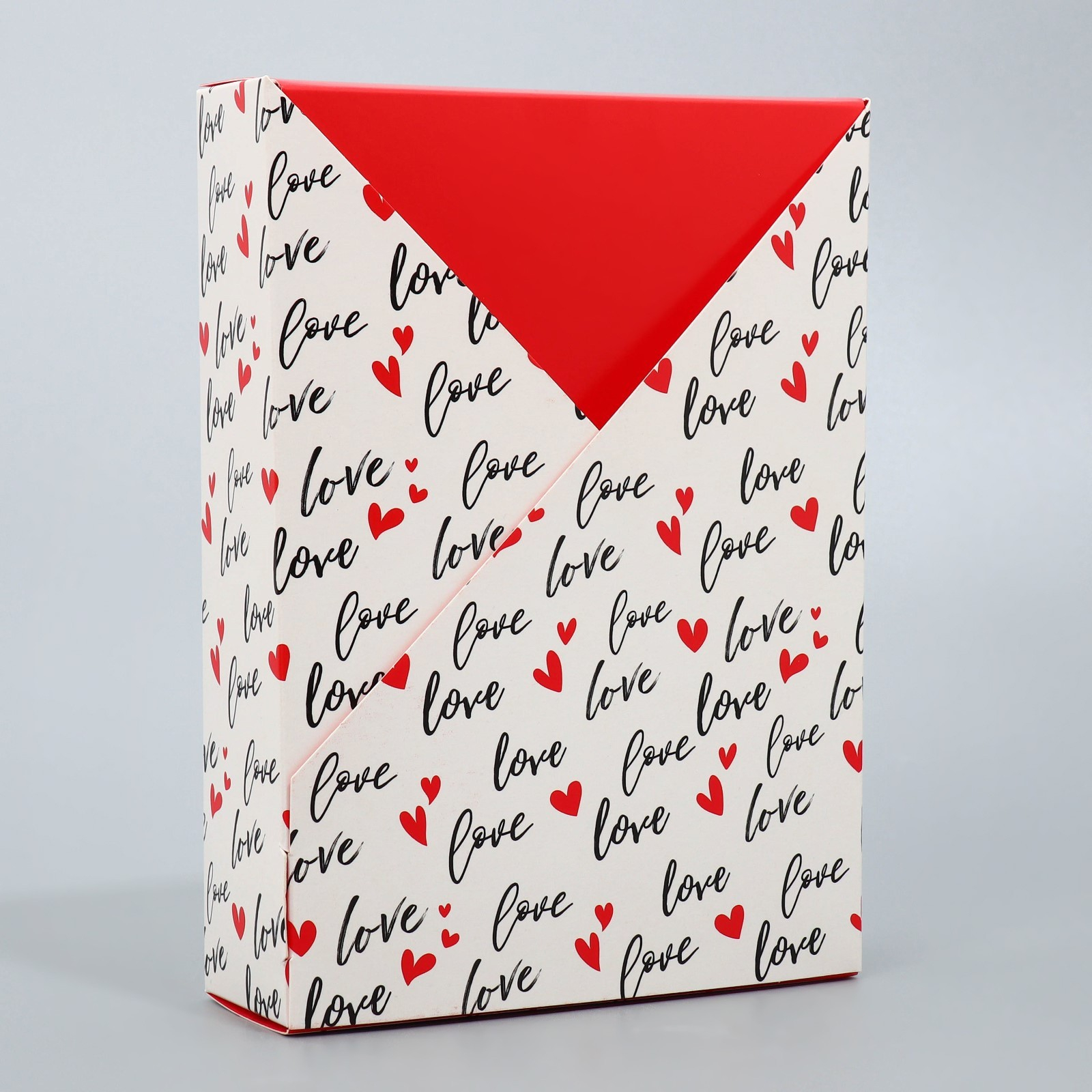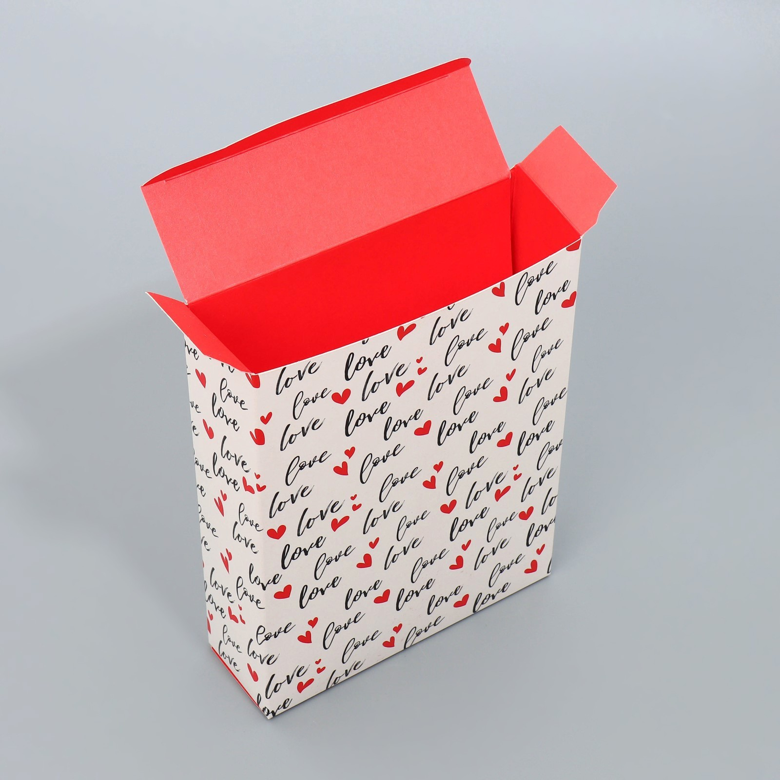 Если у вас есть подарок, то ему обязательно нужна упаковка. Прекрасная яркая коробка с тысячей слов люблю сохранит интригу и привлечет внимание сразу.