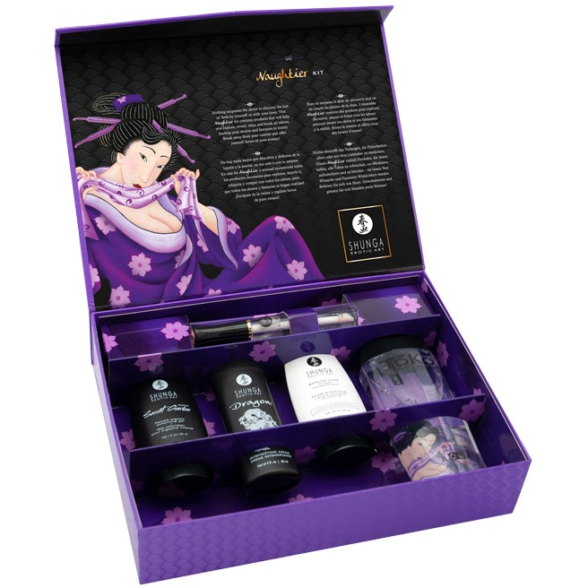 Подарочный набор Naughter Kit идеально сочетает лучшие свойства самых интересных средств популярного бренда Shunga. Эта интимная косметика с дополнительными функциями пробудит вашу страсть и добавит пикантности прелюдии и чувственным играм. В подарочной упаковке вы найдете пять популярных продуктов, которые обязательно захочется попробовать вместе с партнером или во время самостоятельной мастурбации: возбуждающий крем-гель Dragon; возбуждающий женский клиторальный гель; крем пробуждающий чувствительность зоны G; лубрикант на водной основе; возбуждающий блеск для губ.