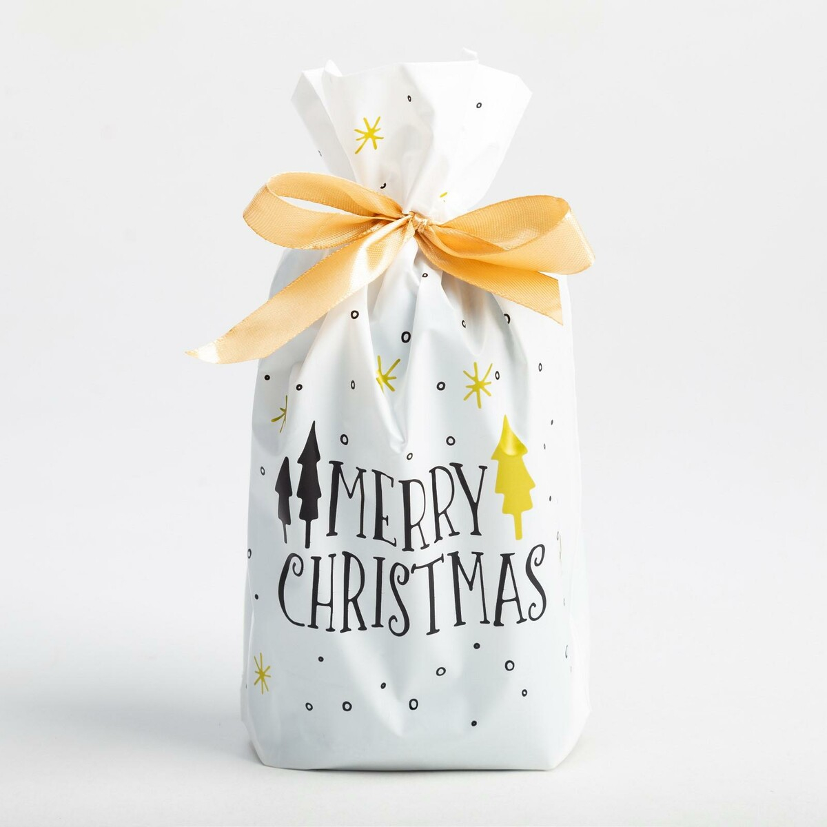 Новогоднее настроение в стильной упаковке! Пакет merry christmas праздничное решение для подарков. Белый фон с ёлочками создаёт атмосферу зимнего волшебства.
