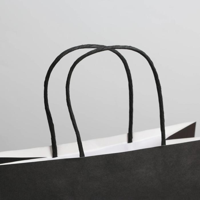Пакет выполнен из плотной бумаги с жизненной надписью. Ручка в виде крученого шпагата.