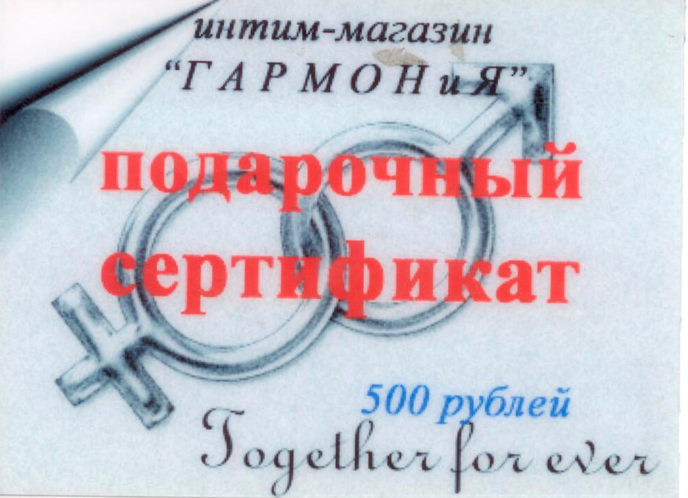 Подарочный сертификат номиналом 500 рублей сети интим магазинов "Гармония"
