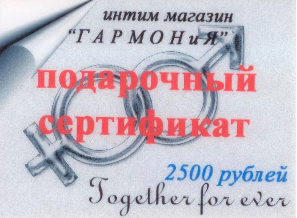 Подарочный сертификат номиналом 1500 рублей сети интим магазинов "Гармония"