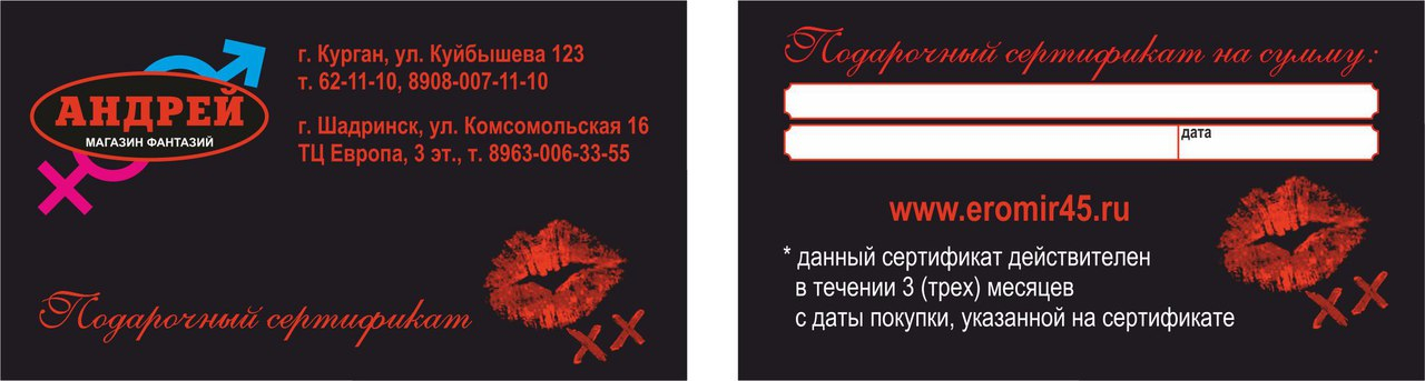 Подарочный сертификат номиналом 500 рублей "магазин-фантазий Андрей"