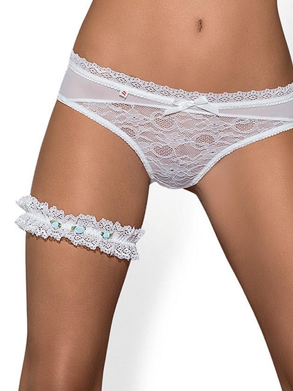 Нежная кружевная подвязка, декорирована маленькими контрастными розочками из атласной ленты.