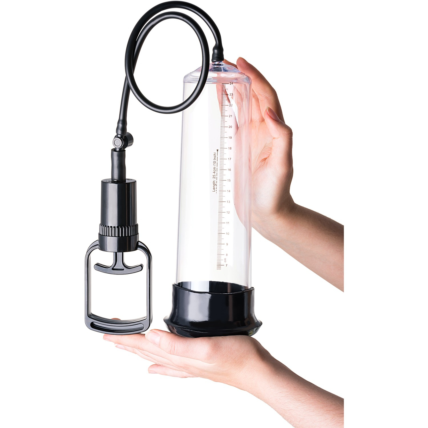 Интересная вакуумная помпа увеличенного размера. Прочная колба изготовлена из прозрачного пластика и снабжена линейкой, чтобы оценивать результат. Помпа имеет удобную систему спуска воздуха, которая управляется одним нажатием кнопки. Удобный механизм позволит достичь нужного давления. Благодаря насадке из мягкого материала, помпа плотно прилегает к телу.