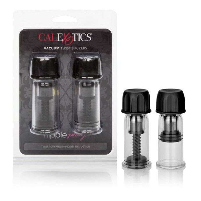 Vacuum Twist Suckers - две полностью регулируемые винтовые помпы для сосков. Прозрачная цилиндрическая колба, крышка и вкручивающийся поршень изготовлены из высококачественного, не содержащего фталатов и безопасного для тела АБС пластика, а уплотнитель из первоклассного силикона.