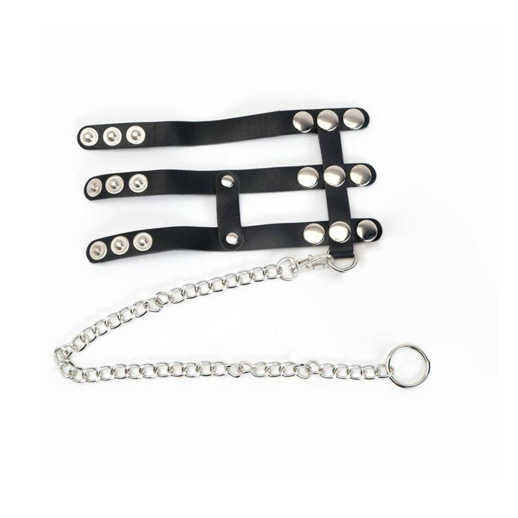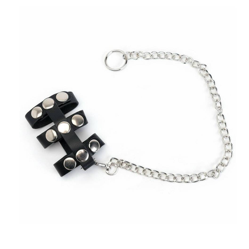 Обычные поводки для Вас слишком просты и не оригинальны? Тогда этот металлический поводок в виде цепочки с кожаным корсажем из трех обхватов позволит партнерше водить Вас за собой за самое интимное место на Вашем теле!