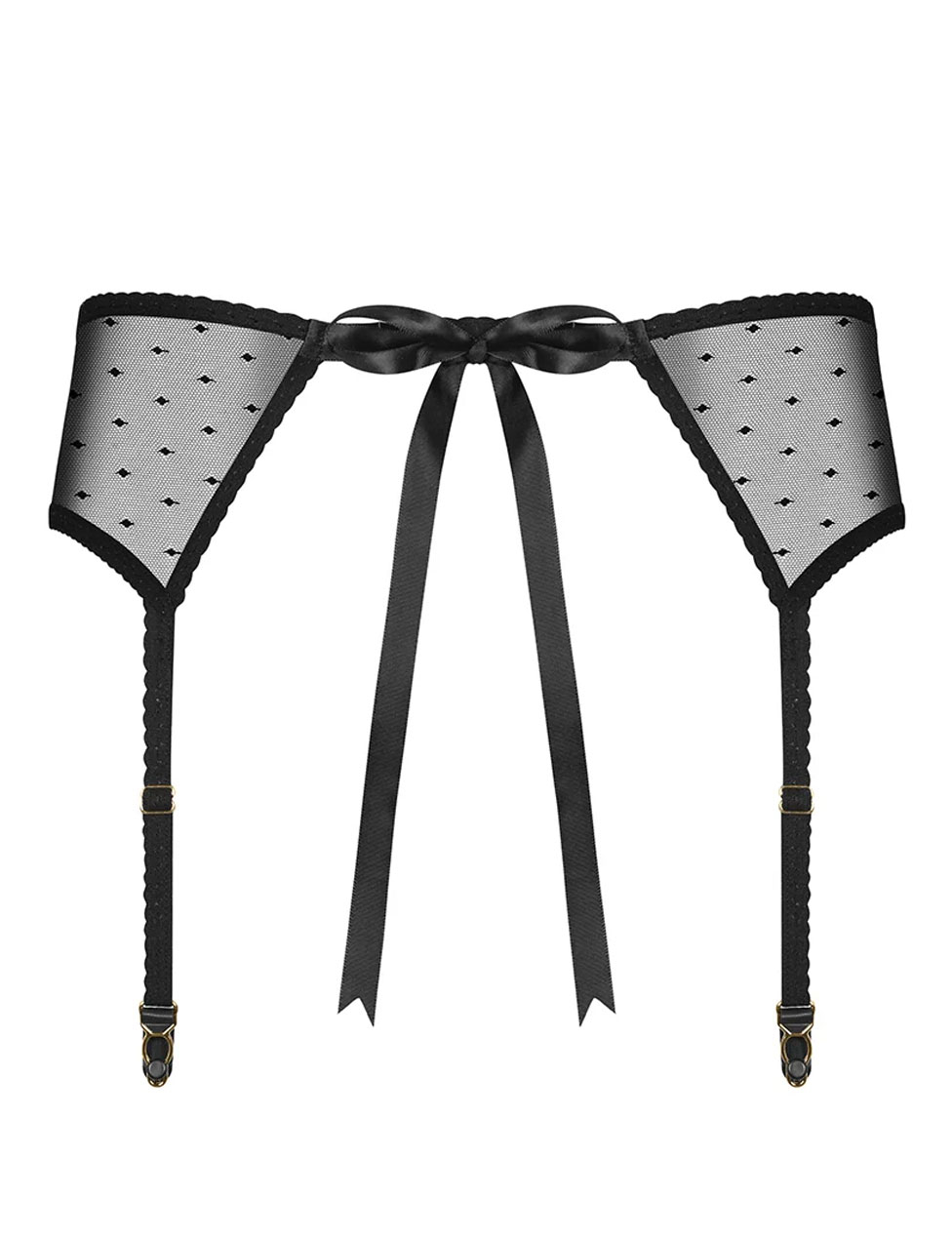 Вы мечтаете о новом дополнении к вашему любимому комплекту нижнего белья? У нас есть то, в чем вы не сможете оторвать глаз от своего отражения в зеркале... Элегантность создана из сочетания классического черного цвета и полупрозрачной сетки в горошек. Наш пояс для подвязок имеет такой привлекательный вид! С Bowessa вы будете чувствовать себя очень женственно, и ваш мужчина возьмет вас в постель... Сегодня вечером вы узнаете, сколько удовольствия может принести такой пояс.