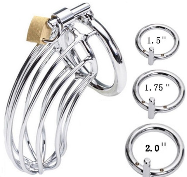 В комплекте три эрекционных кольца - 4, 4,5 и 5см в диаметре, и замочек с тремя ключами