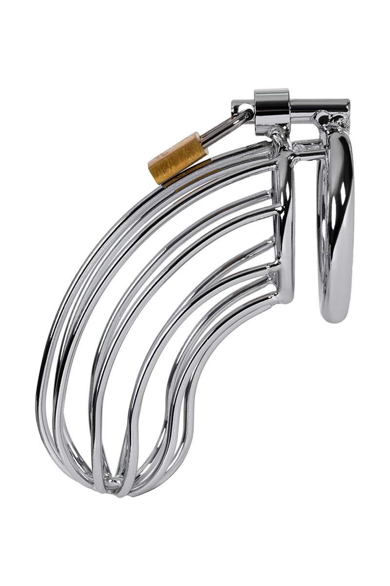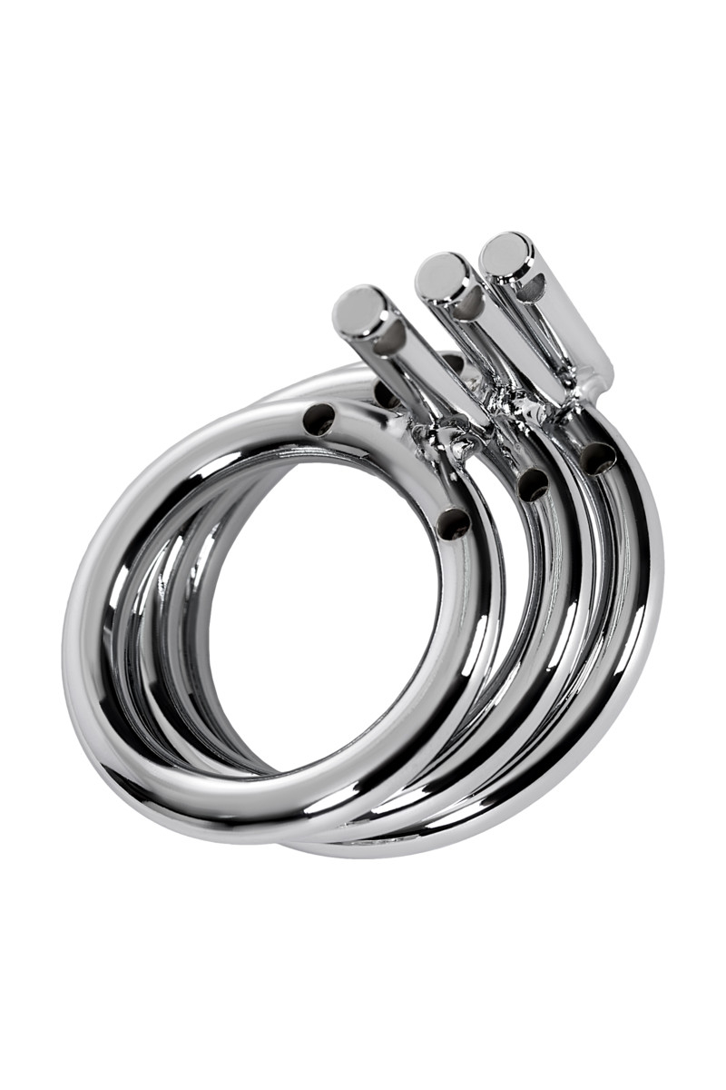 Ствол представляет собой вертикальные, металлические прутья, соединенных в маленькое кольцо в области головки, и большее в основании. Эрекционное металлическое кольцо с надежным замком соединяется с основной конструкцией — и удерживает надежно на теле мужчины!