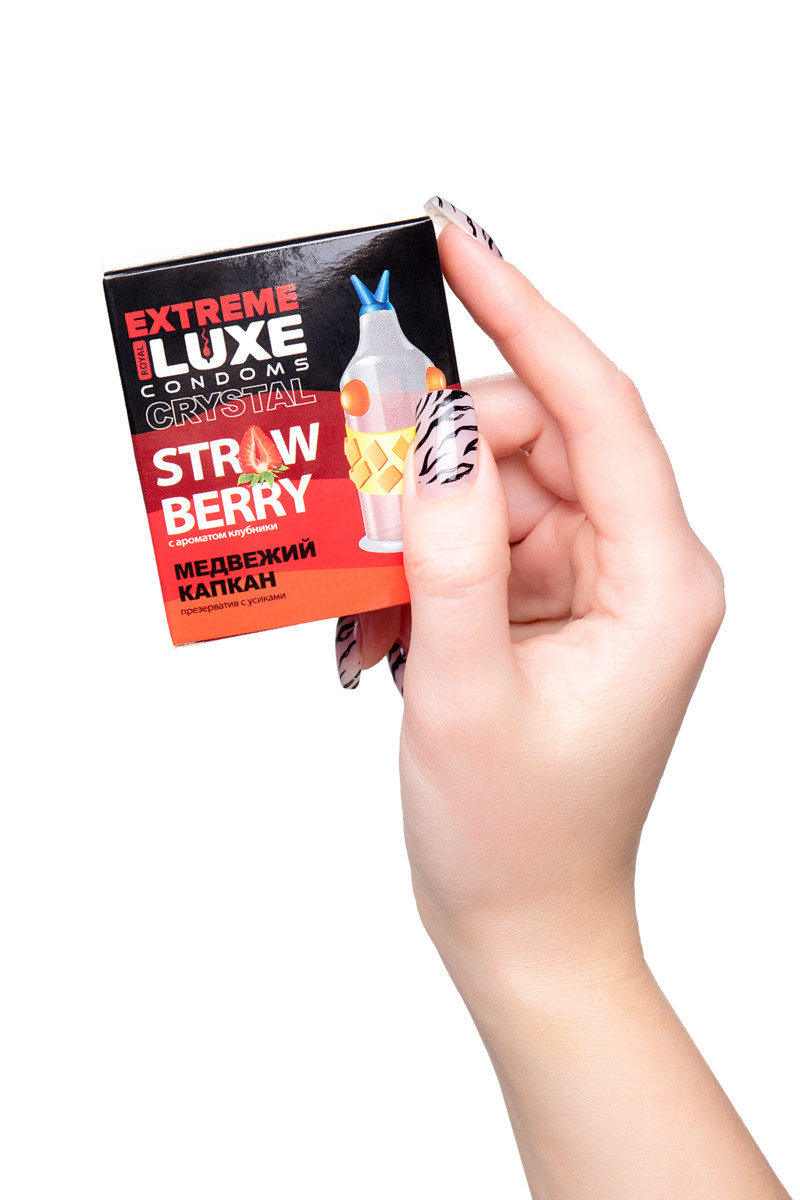 Презерватив Luxe EXTREME Медвежий Капкан с ароматом клубники создан специально для путешествия к удовольствию. Изысканный рельеф с ребрами и выпуклыми шариками позволит усилить стимуляцию, открывая новые грани взаимного наслаждения. Медвежий капкан - это мертвая хватка захватывающих ощущений от проникновения и движения. Аромат сладкой спелой клубники сделает процесс еще более сочным и волнующим.