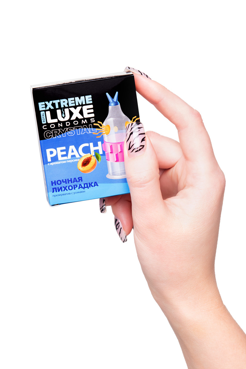 Презерватив Luxe EXTREME Ночная Лихорадка поможет пройти тропой экстремального удовольствия. Новый рельеф с ребрами и усиками сделает твой пенис настоящим орудием экстаза. Качественный латекс отвечает за безопасность, а выпуклые грани и усики-щеточки гарантируют наслаждение чувственными движениями. Ночная лихорадка с ароматом персика подарит новые ощущения и сделает секс незабываемым.