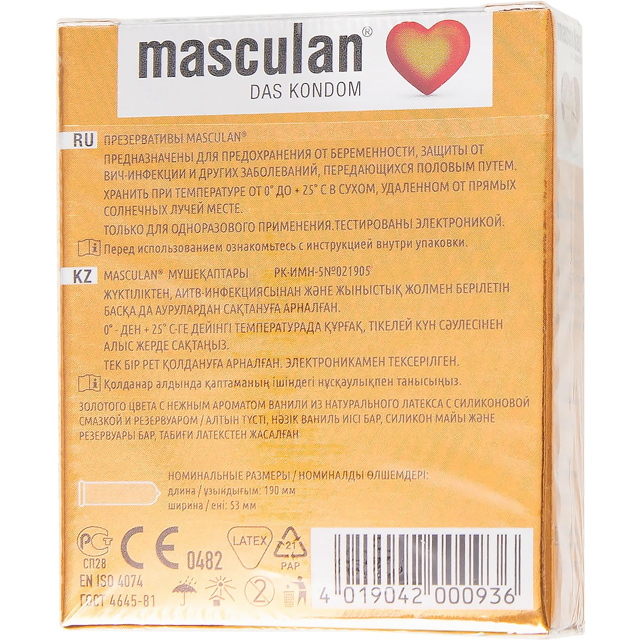 Masculan Gold Luxury Edition – это утонченные элегантные презервативы элитной серии. Они имеют стандартную форму и гладкую текстуру. Изюминкой данного изделия является красивый золотистый цвет и нежный чувственный аромат сладкой ванили. Эти презервативы сделают ваш секс не только безопасным, но и позволят насладиться им в полной мере.