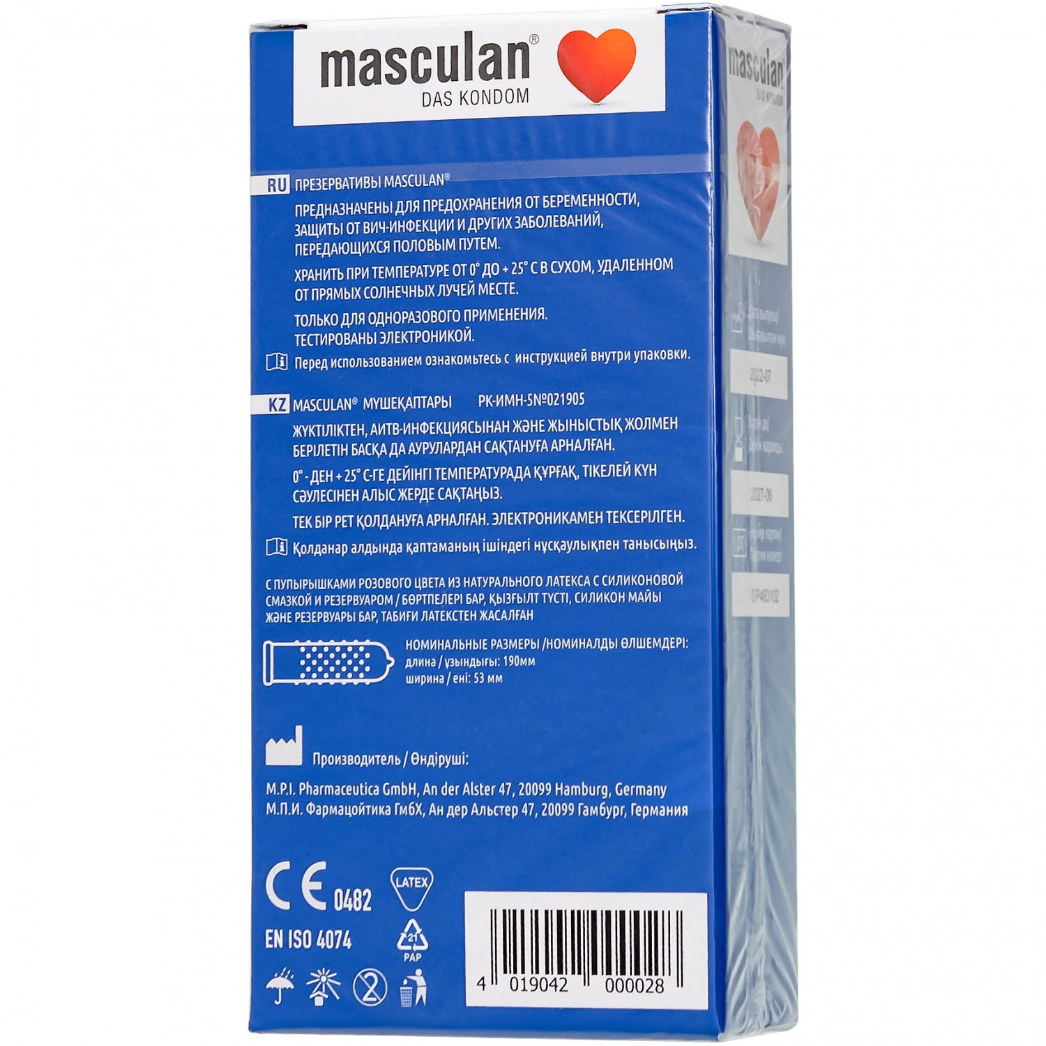 Продукция Маскулан по качеству изделия и упаковки является товаром премиум класса, однако позиционируется бренд в среднем ценовом сегменте, предоставляя высокое качество изделия по доступной основной массе населения цене. Презервативы Masculan значительно превосходят требования ГОСТа по многим характеристикам (длина, сила на разрыв и т.д.).