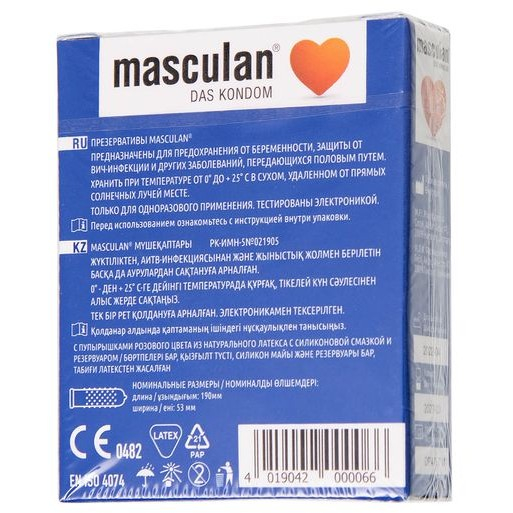 Продукция Маскулан по качеству изделия и упаковки является товаром премиум класса, однако позиционируется бренд в среднем ценовом сегменте, предоставляя высокое качество изделия по доступной основной массе населения цене. Презервативы Masculan значительно превосходят требования ГОСТа по многим характеристикам (длина, сила на разрыв и т.д.).