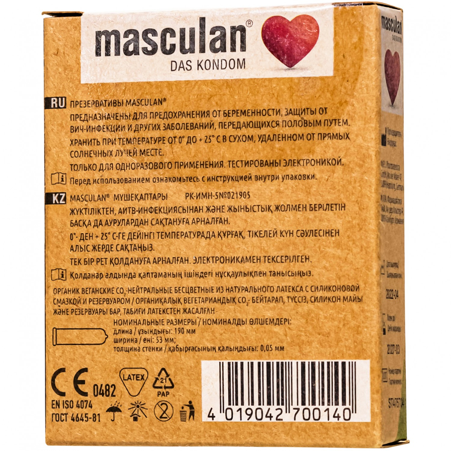 Продукция Маскулан по качеству изделия и упаковки является товаром премиум класса, однако позиционируется бренд в среднем ценовом сегменте, предоставляя высокое качество изделия по доступной основной массе населения цене. Презервативы Masculan значительно превосходят требования ГОСТа по многим характеристикам (длина, сила на разрыв и т.д.).
