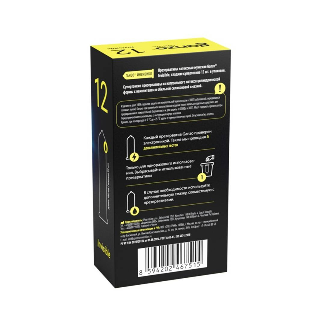 Немаловажно и то, что Ganzo Invisible уже изначально содержат увеличенное количество смазки, благодаря чему скольжение становится ещё более комфортным, а риск возникновения дискомфорта сводится к минимуму даже при длительной близости. Смазка имеет силиконовую основу, прозрачная и не имеет запаха.