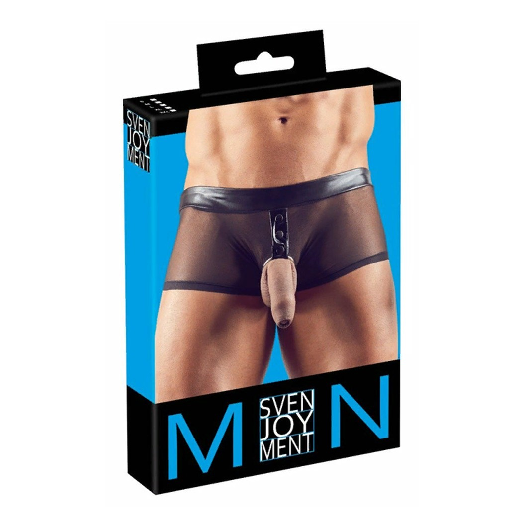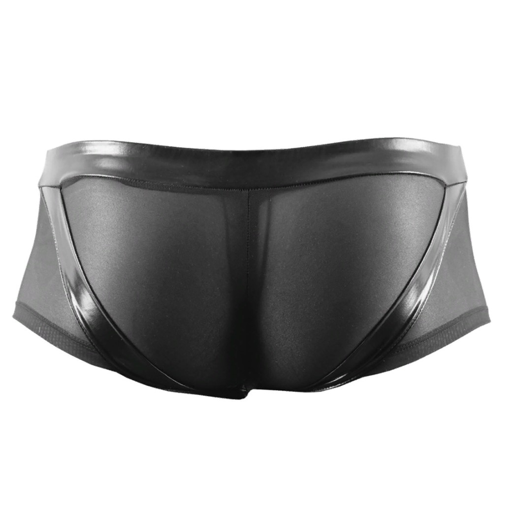 Эта горячая модель безошибочно подчеркивает вашу сексуальность и мужественность. Шорты выполнены из прозрачной сетки с деталями в виде полосок из "мокрой кожи". Стрепы на попе идеально подчеркивают ягодицы и приковывают взгляд.
