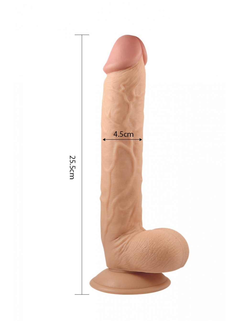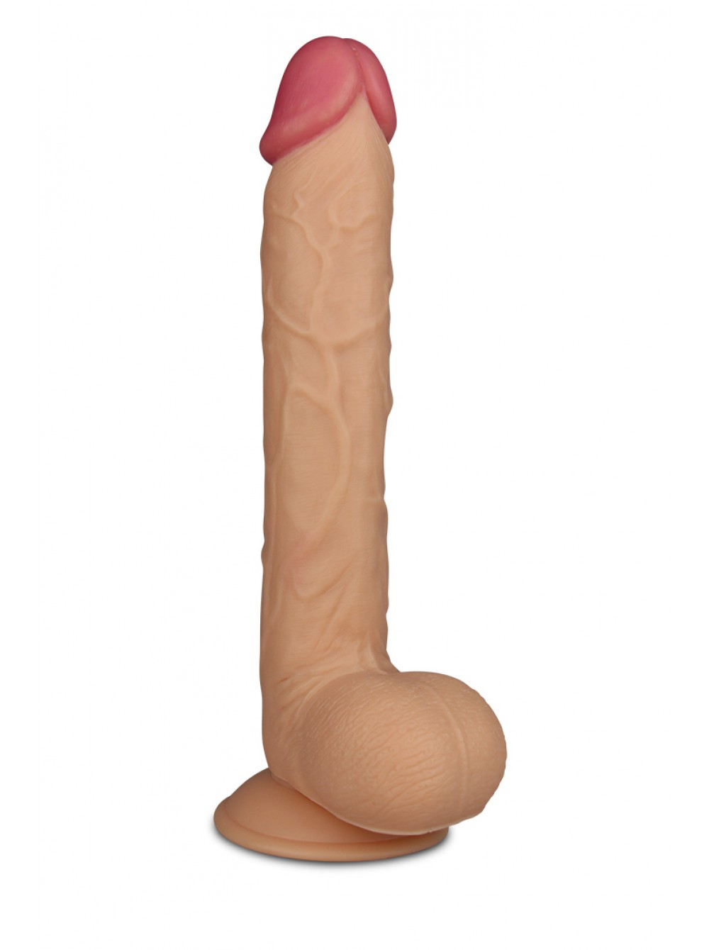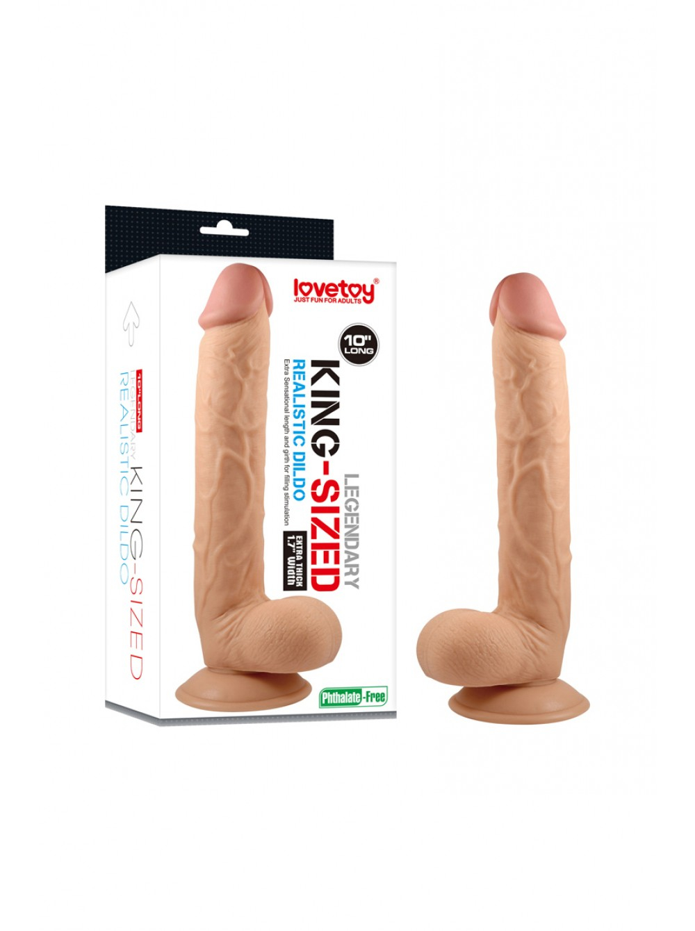LoveToy King-sized Realistic Dildo - внушительных размеров фаллоимитатор телесного цвета, он длинный, стройный с отличной эрекцией. В нем есть все: более чем внушительный размер, крупная мошонка, необычайно реалистичная головка и присоска, для более комфортного использования на любой плоской поверхности.