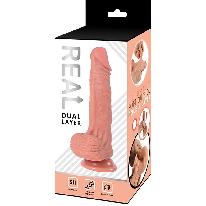 Real Dual Layer - реалистичный фаллоимитатор из высококачественного безопасного силикона. Современная технология изготовления обеспечивает игрушке двойную структуру. Плотный стержень покрыт слоем нежного и приятного на ощупь материала. Такая структура материала позволяет добиться ощущения живой кожи, сохранив при этом гигиеничность и износостойкость силикона.