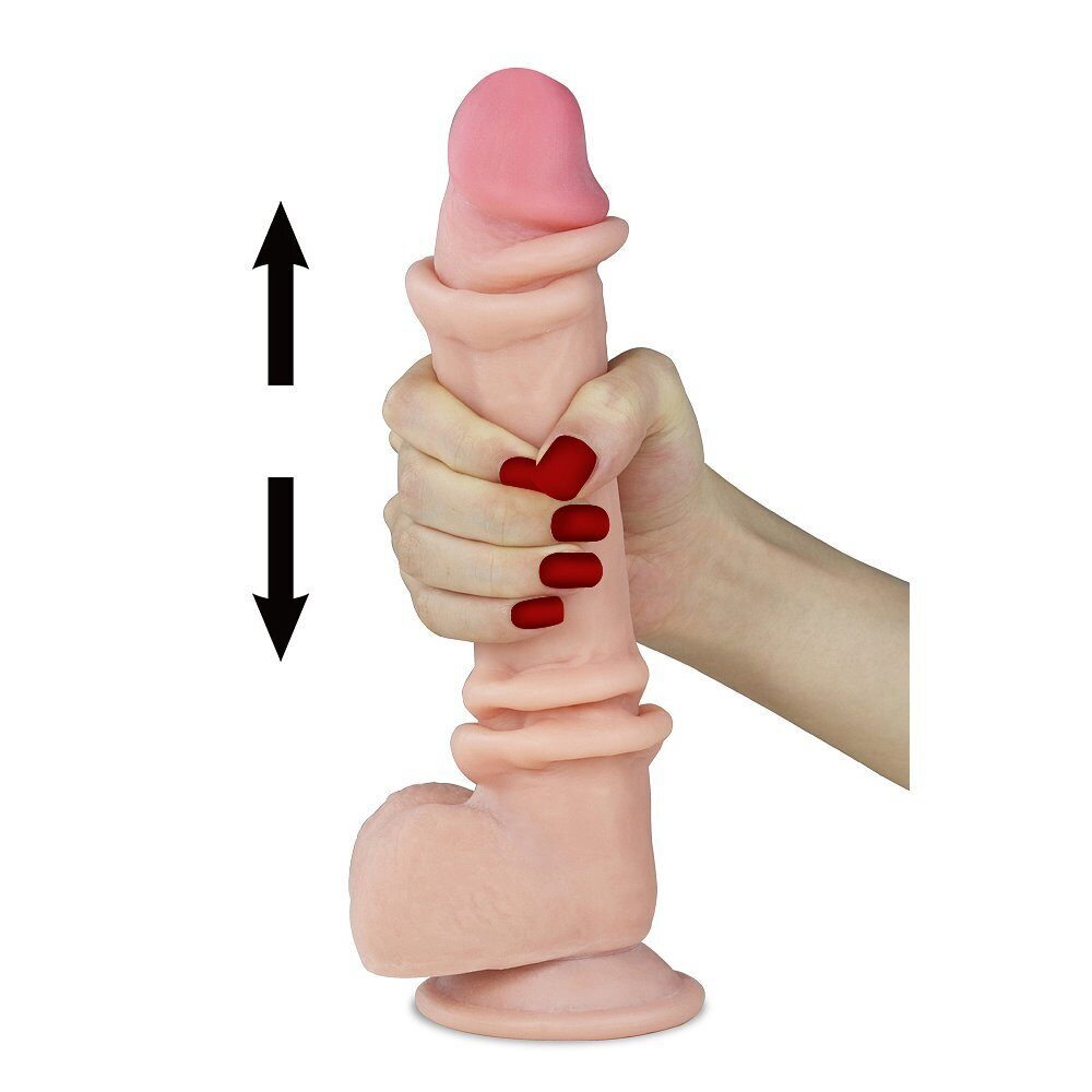 Супер реалистичный фаллоимитатор Sliding --skin dong с внутренним хребтом, с ярко выраженной пульсирующей головкой, с сочной мошонкой на присоске обладает всеми качествами для звания "Супер герой". Он покорит женщину с первого прикосновения и сведет с ума при проникновении.