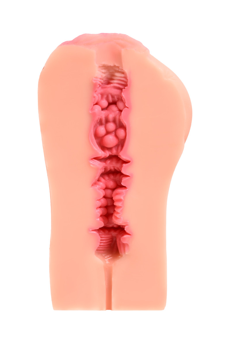 Стимулирующий внутренний тоннель просто анатомически интересен: сложный рельеф в виде бусин, разнонаправленных ребрышек, выступов и складочек обеспечивает активный массаж члена, имитирующий секс с реальной партнершей. Три узких обхватывающих конца в конце вагины, дают реальные ощущения глубоко проникновения и тесного захвата головки члена. Вообщем с этой игрушкой все реально.
