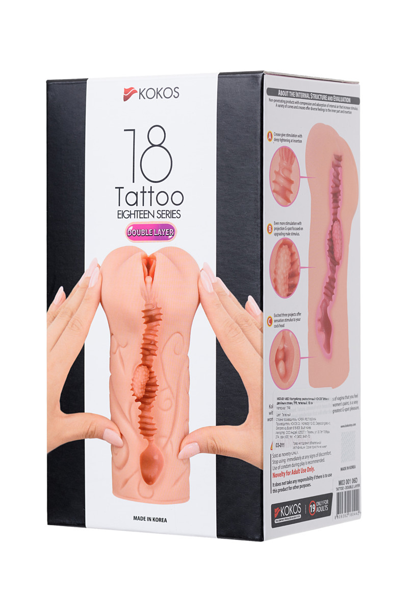 Девушки с татуировками обладают особенным сексуальным темпераментом, и дизайнеры KOKOS сумели в полной мере передать его в мастурбаторе Tattoo: игривый рисунок и набухшие от возбуждения половые губы включают фантазию на максимум и быстро погружают вас в мир необузданных желаний.