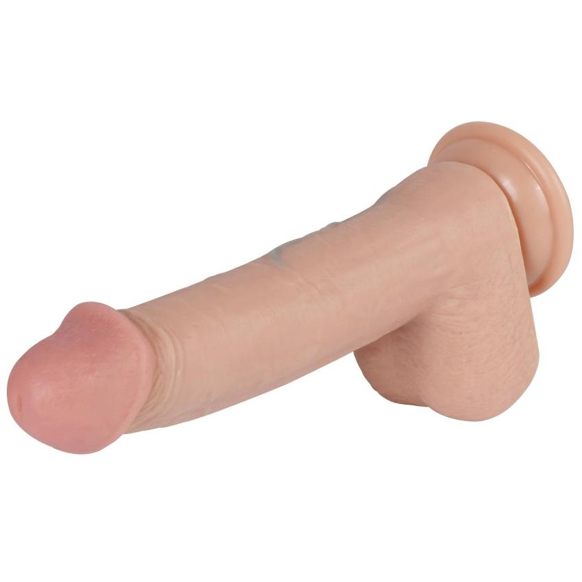 Имитация имеет мягкую округлую головку, гибкое покрытое венками тело и упругую мошонку. Присоска в основании позволяет надежно закрепить игрушку на любой гладкой поверхности или использовать в качестве страпона.