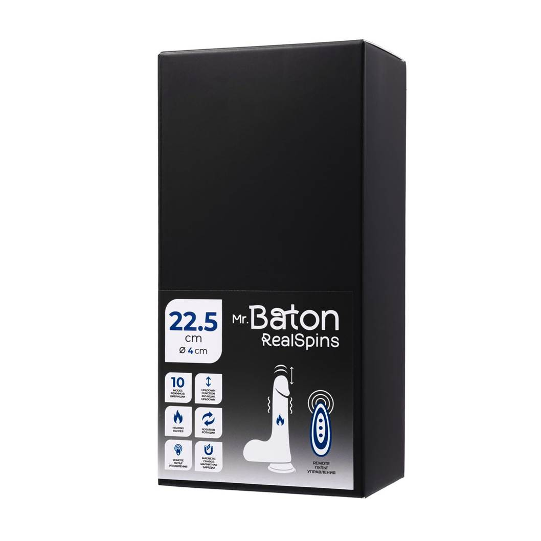 Каждая деталь, включая выраженную головку, уздечку, подвенечную борозду и венки на стволе, воссоздана с поразительной точностью для создания естественного ощущения. Ведь Mr. Baton имеет не маленький размер 22,5 см и ширина 4 см- ощутимое внутренне удовольствие, которое подарит заполненность и давление на стенки. Большая мошонка в основании выступит как дополнительный стимулятор зоны промежности и клитора, просто присядьте поглубже и вы затанцуете по другому.