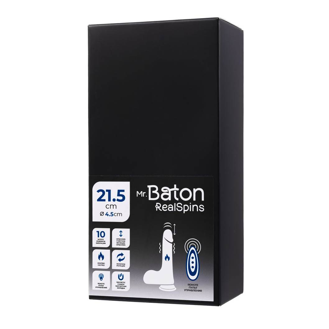 Каждая деталь, включая выраженную головку, уздечку, подвенечную борозду и венки на стволе, воссоздана с поразительной точностью для создания естественного ощущения. Ведь Mr. Baton имеет не маленький размер 21,5 см и ширина 4,5 см- ощутимое внутренне удовольствие, которое подарит заполненность и давление на стенки. Большая мошонка в основании выступит как дополнительный стимулятор зоны промежности и клитора, просто присядьте поглубже и вы затанцуете по другому.