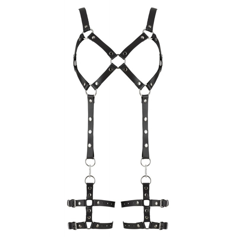 Металлические кольца и кожаные ремешки на обнаженной коже - невероятно эротичное зрелище, но в этих стрепах есть нечто большее! Широкие ремешки из черной кожи облегают грудь, которая благодаря этому становится доступной для ласк вашего партнера по играм. Два широких ремешка для бедер можно использовать для крепления на нижние ремни с уплотнительными кольцами с помощью карабинов. Это позволяет, например, вашему партнеру прикрепить вас к другому игровому устройству ...