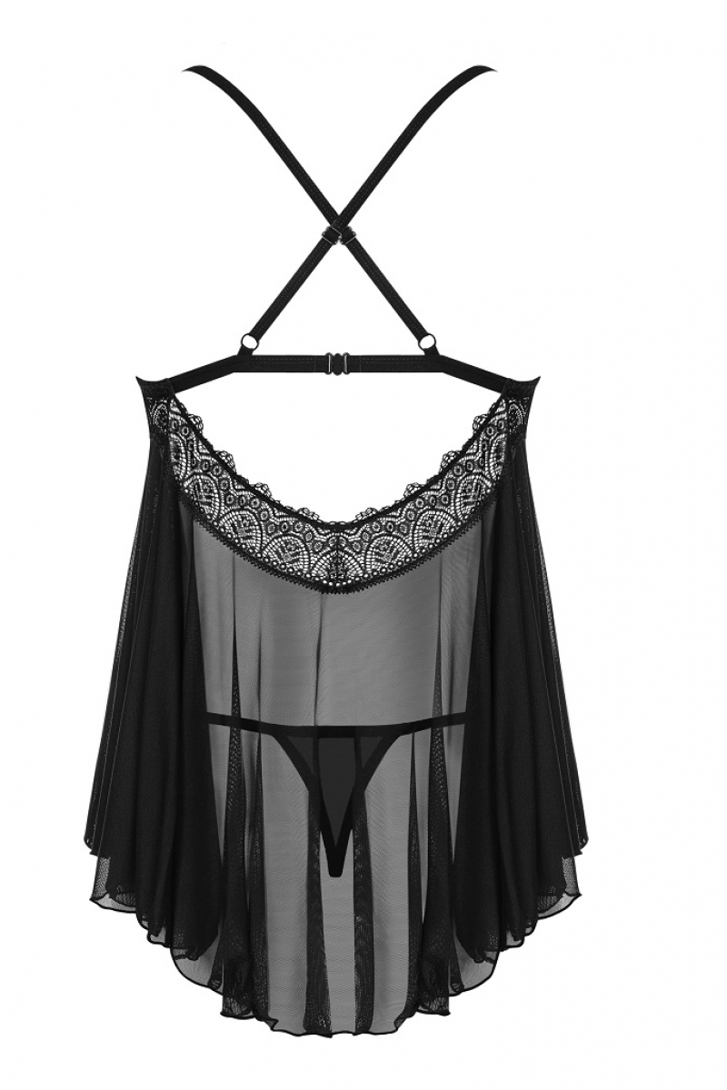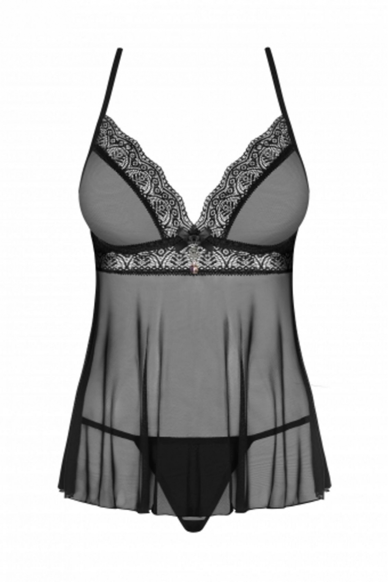 Очаровательный бэбидолл из нежной прозрачной вуали, окутывающий ваше красивое тело, добавит изюминки. Глубокое декольте и зона бюста декорирована прекрасным мягким кружевом, которое дарит вашему образу нежность. Мягкий бюст, перекрещивающиеся регулируемые тонкие бретели и застежка на спине полностью подгонят бэбидолл по вай фигуре. Многоуровневый подол добавит вашему образу легкости и воздушности.