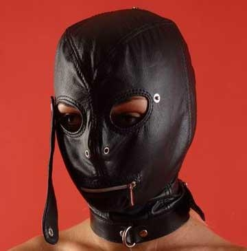 Шлем с ошейником черного цвета. Шлем из мягкой одежной кожи на ремне. Сзади — шнуровка, шоры отстегиваются. Ручная работа.