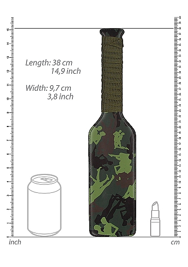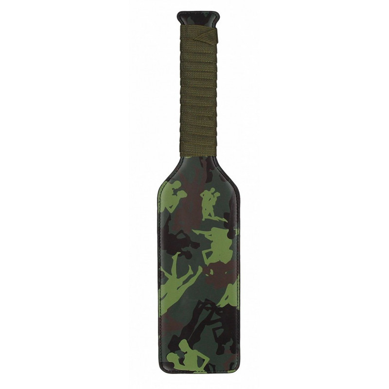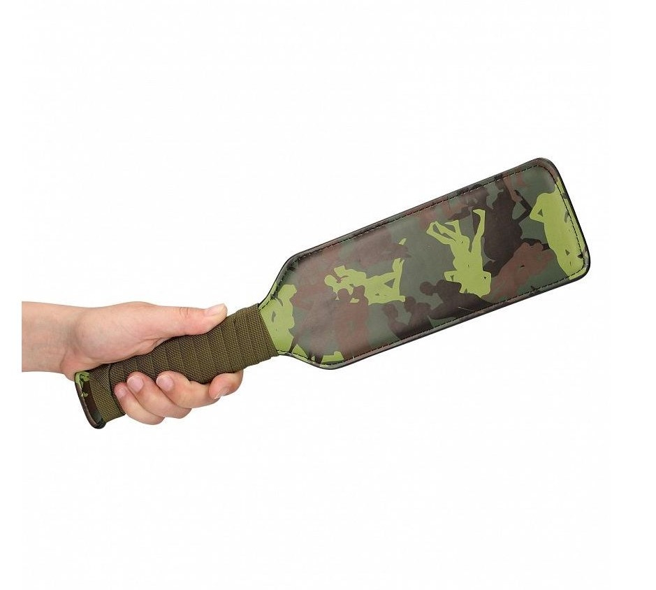 Шлепалка Army Theme - ударный девайс для эротических ролевых игр и практик БДСМ. Он выполнен из мягкого материала. Ударная часть имеет прямоугольную форму, плавно перетекающую в рукоять с удобной петлей для фиксации изделия на запястье (темляк).